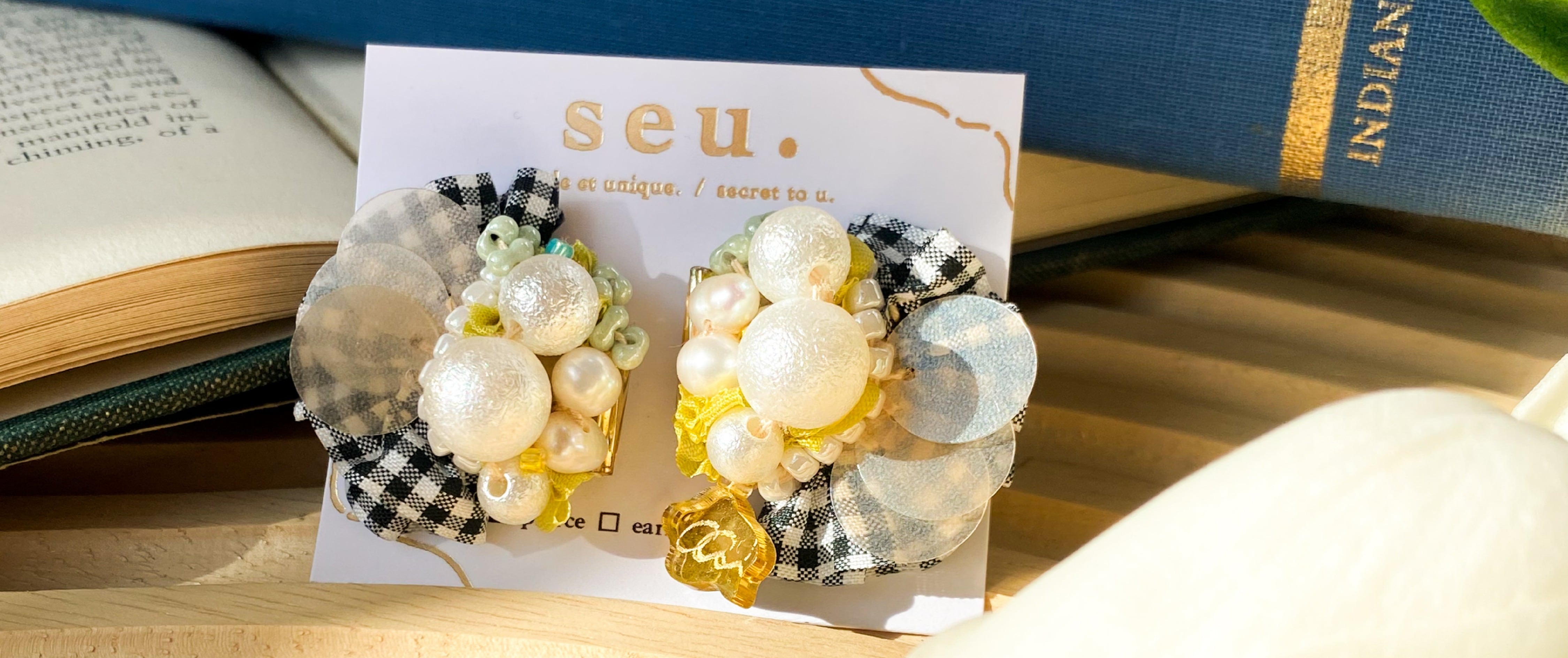ギュギュっとお花のバスケット . ビーズ一つ一つを丁寧に刺繍した、ボリューミーな片耳アクセサリーです。 ふんわりとしたチェックのリボンにタンスイパールや樹脂パール、ガラスビーズなどを詰め込んだ女性らしいアクセサリーです。 サージカルステンレス製のクリップ金具を使用しているため着脱も簡単。 裏地は合皮を丁寧に縫い込んでおります。 material▶︎淡水パール、スパンコール、樹脂パール、ガラスビーズ、リボン ーーーーーーーーーーーーーーーーーーーーーーーーーーーーー size list 縦 :約6cm 横 :約4cm 重さ:約9g(片耳) 金具:サージカルステンレス ※在庫作品になりますので、原則金具交換は受け付けておりません。 同じ作品を受注制作も可能ですのでご希望のお客様は、メッセージやメールにてご連絡いただけると幸いです。 ーーーーーーーーーーーーーーーーーーーーーーーーーーーーー カラー等、いつでもメッセージにご相談くださいませ:)