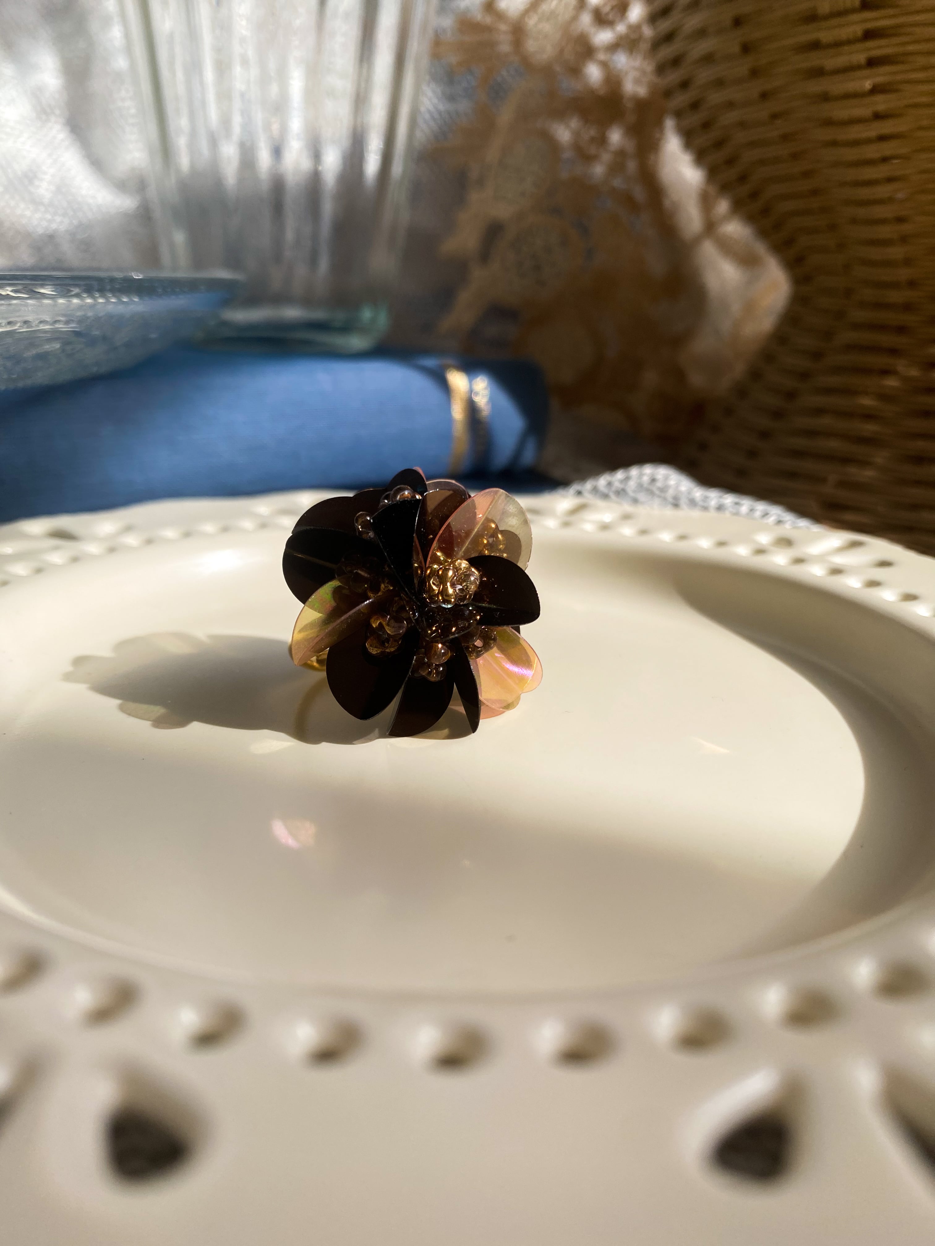 スパンコールをぎっしり編み込んだ華やかなリングです。